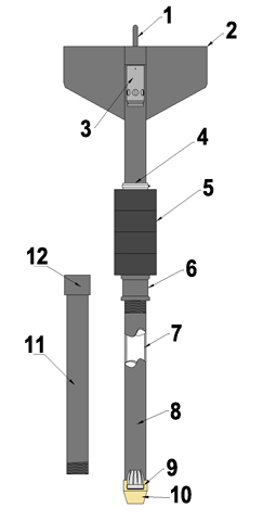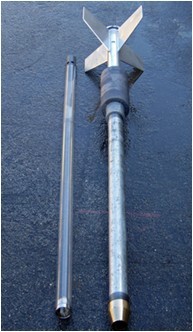 活塞取樣管需要一個觸發(fā)裝置來操作,觸發(fā)裝置觸底之后,會釋放取樣主體,使其在距地5m的高度自由落體。和重力取樣管使用閥不同,活塞取樣管的內(nèi)襯管中安裝了一個活塞,并在取樣前置于內(nèi)襯管的底部,這樣活塞就阻止了在下放過程中水流的通過。當采樣管扎進泥樣中后,活塞會被迫與泥樣一起提升,活塞與布放線纜相連,并在上升過程中形成真空,減少樣品流失。