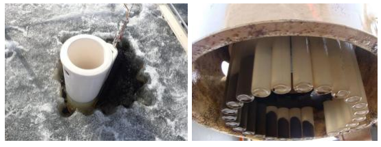 PPS3/3(開口面積0.125m2)和 PPS4/3(開口面積0.05m2)收集桶為圓柱形,特別適合于在沉積物通量較高的環(huán)境中使用,且體積小巧,適合于小船布放。