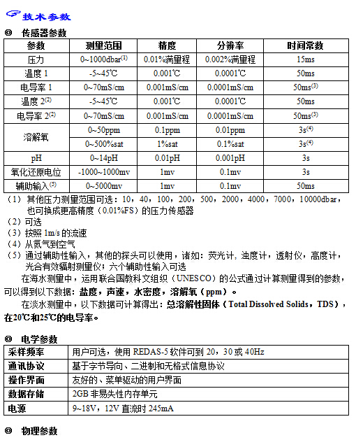 CTD允許用戶使用REDAS-5軟件進行實時在線監(jiān)測,采樣頻率為20,30或者40Hz。