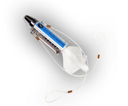 美國General Oceanics公司GO-FLO球閥采水器操作程序為閉合-打開-閉合。當采水瓶放入水中約在10m的深度,由于靜水壓的作用會自動打開,然后下降到指定深度后,再由使錘激發閉合。GO-FLO球閥采水器既可以單獨或串聯使用,也可以安裝在采水器陣列上,由CTD控制。瓶體采用非金屬材質,免沖洗結構。采水器的金屬部件可以更換為特氟龍涂層的,用來采集水樣做重金屬檢測。GO-FLO球閥采水器可以通過過濾系統將惰性氣體注射到瓶內將水樣壓出瓶體,可以避免水體表面,內部彈簧以及在甲板上操作等造成的污染。還可以避免不同深度水層的水體交換。采水容積分為1.7,2.5,5.0,8.0,10,12,20,30,60,90,100L。